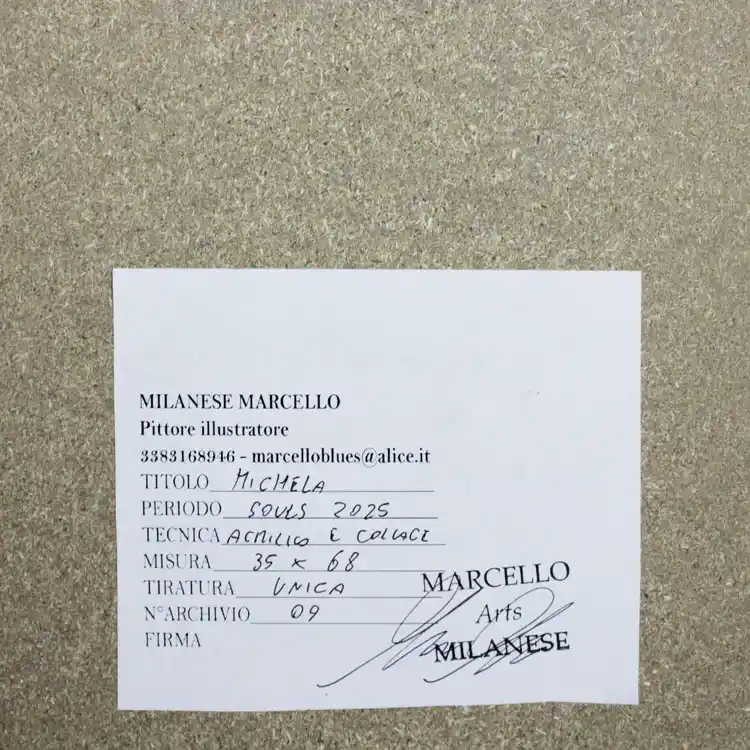 OPERA IN ACRILICO E COLLAGE – dalla collana SOUL 2025 di Marcello Milanese – Archivio 09 – opera unica – Titolo-MICHELA