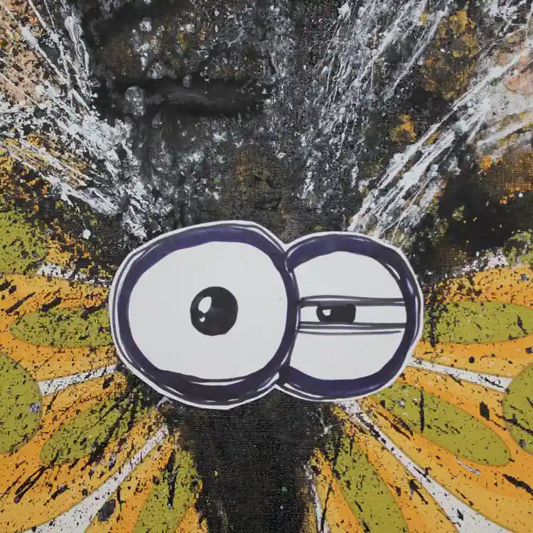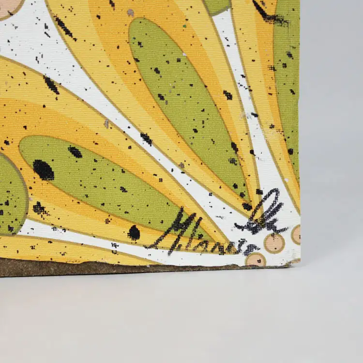 OPERA IN ACRILICO E COLLAGE – dalla collana SOUL 2025 di Marcello Milanese – Archivio 09 – opera unica – Titolo-MICHELA Lo schizzo di vernice vuole rappresentare l’interno dell’anima e l’espressione fumettistica è la maschera esterna dell’essere umano, con la sua reazione all’ambiente. Le carte da gioco, o i quadri sullo sfondo di alcune opere, ne simboleggiano l’interpretazione del mondo esterno: in particolare tutti gli elementi sono stati, prima dell’applicazione sulla tela, colpiti da proiettili, simbologia della vita reale. L’uso di carta da parati vintage crea uno spazio falsamente confortevole alla rappresentazione artistica. I dipinti di Milanese sono specchi interiori oppure esorcizzazioni delle paure, e lasciano l’interpretazione al fruitore.